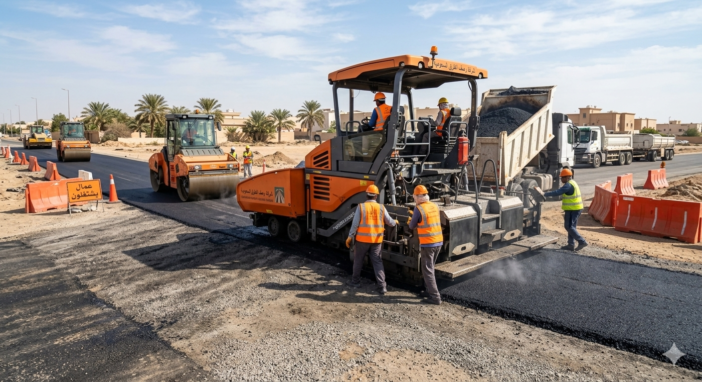 تنفيذ الطرق والجسور وأعمال الرصف والسفلتة وفق المواصفات القياسية لضمان انسيابية الحركة وسلامة النقل.